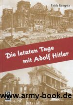 Erich Kempka gehörte zu den Menschen, die Adolf Hitler am Ende noch gesehen haben. Er war an der Verbrennung der Leiche beteiligt. Die letzten Tage und Wochen des II. WK im Bunker unter der Reichskanzlei werden detailliert geschildert. Zusätzlich werden die Ereignisse im Bunker von Erich Kern in einen größeren Kontext eingeordnet.